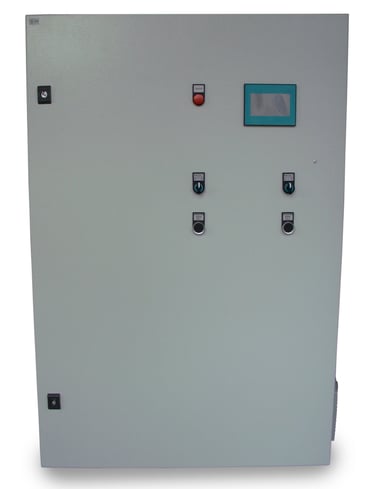 The control cabinet, based on an industrial controller, allows for stepwise adjustment of the performance of wastewater treatment plants depending on the different operating conditions of these plants.