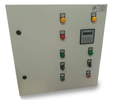 Control cabinet for a multi-pump fire extinguishing station with 3-phase pumps.