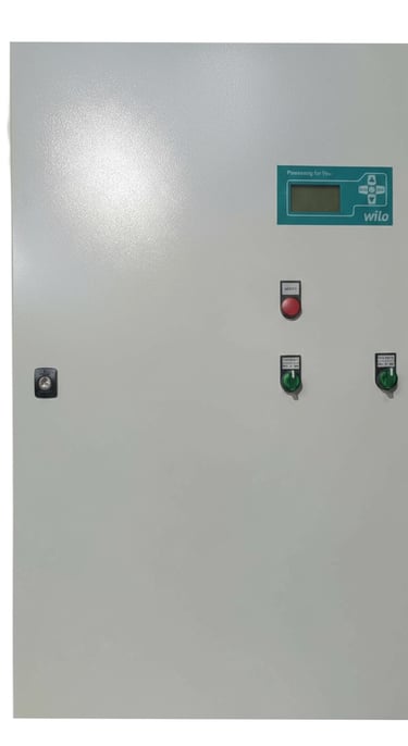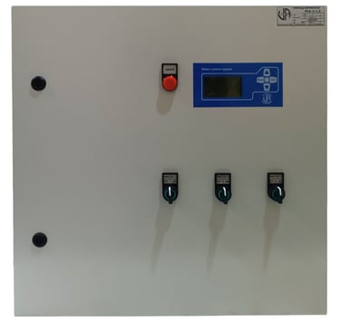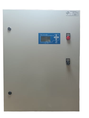 Пульт керування 3-х фазною, від 1-го до 4-х насосною станцією, дозволяє здійснювати безступінчасте регулювання продуктивності установок опалення, вентиляції та підвищення тиску в залежності від різних умов експлуатації даних установок.